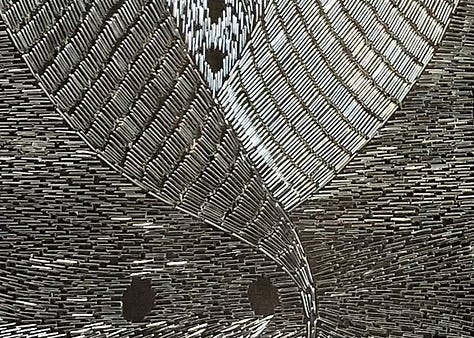 “It’s heavy, like a gun, and it sounds like a gun. I have to protect my ears and eyes when I work with it. So it’s quite a violent method, but for me it’s about the mending part of it,” she says.