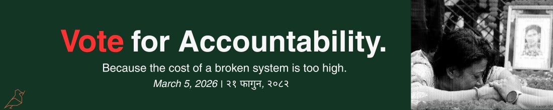 But first, a hearty welcome to all our new readers and supporters. With the election next week, we will be bringing you more analysis and reporting on how the voting goes and the aftermath of the polls. We hope you will continue to read us and, if you can, support us, as this is an especially crucial time for us here in Nepal. Please click the button below to support us via Substack or scan the QR code to support us with your bank app.